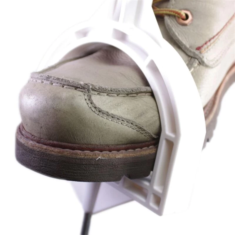 Mit dem Steigbügel lassen sich die Weidezaunpfähle einfach und trittsicher an Ihrem Weidezaun eintreten. Ein eingespritzter verzinkter 8mm Stahlnagel am Fußende der Weidepfähle und dessen verwindungsfreihes Profil sorgen für festen Stand auch auf unebenem Grund. Die beiden Trittstege links und rechts über dem Stahlnagel verteilen die auf den Weidezaunpfahl wirkenden Kräfte in weichen und harten Böden. Die insgesamt 10 Ösen entlang der Weidezaunpfähle mit Steigbügeltritt verteilen sich auf 2 breitere Weidezaunband-Ösen und 4 Ösen für Weidezaunseil oben und 4 schmale Weidezaunband-Ösen jeweils unten am Weidezaunpfahl. Die weiße Farbe macht die Steigbügelpfähle gut sichtbar für Ihre Tiere und sorgt für Hütesicherheit.