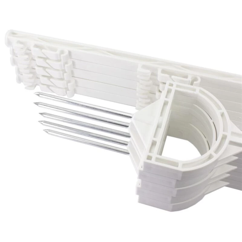 Die 10 Stück weiße Steigbügelpfähle 155cm »Steigbügel« Kunststoff Pfähle sind 155cm lang (8 Band-, 8 Seil-Ösen). Mit Ihrer Länge von 1,55m eignen sich die Steigbügel Kunststoffpfähle für Weidezäune und Portionsweiden mit: Grosspferden, Pferden, Ponys, Rinder, Bullen, Schafe, aber auch zur Wildabwehr gegen Hirsch und anderes Rotwild. Mit dem Steigbügel lässt sich der Weidezaunpfahl einfach und trittsicher an Ihrem Weidezaun eintreten. Ein eingespritzter verzinkter 8mm Stahlnagel am Fußende der Weidezaunpfähle und dessen verwindungsfreihes Profil sorgen für festen Stand.