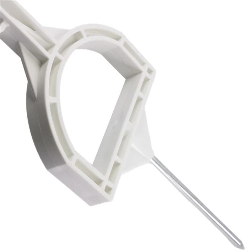 Die beiden Trittstege links und rechts über dem Stahlnagel verteilen die auf den Weidezaunpfahl wirkenden Kräfte in weichen und harten Böden. Die Steigbügelpfähle sind aus glasfaserverstärktem Polypropylene (PP) und dadurch besonders belastbar und bruchsicher. UV-Stabilisierende Additive in der Kunstsstoffmischung schützen die Weidezaunpfähle davor durch Lichteinwirkung spröde oder brüchig zu werden. Die insgesamt 16 Ösen entlang der Weidezaunpfähle mit Steigbügeltritt verteilen sich auf 4 schmale Weidezaunband-Ösen unten, 4 breitere Weidezaunband-Ösen und 8 Ösen für Weidezaunseil jeweils oben am Weidezaunpfahl. Weiße Steigbügelpfähle sind zudem gut sichtbar für die Tiere und sorgen damit für Hütesicherheit.
