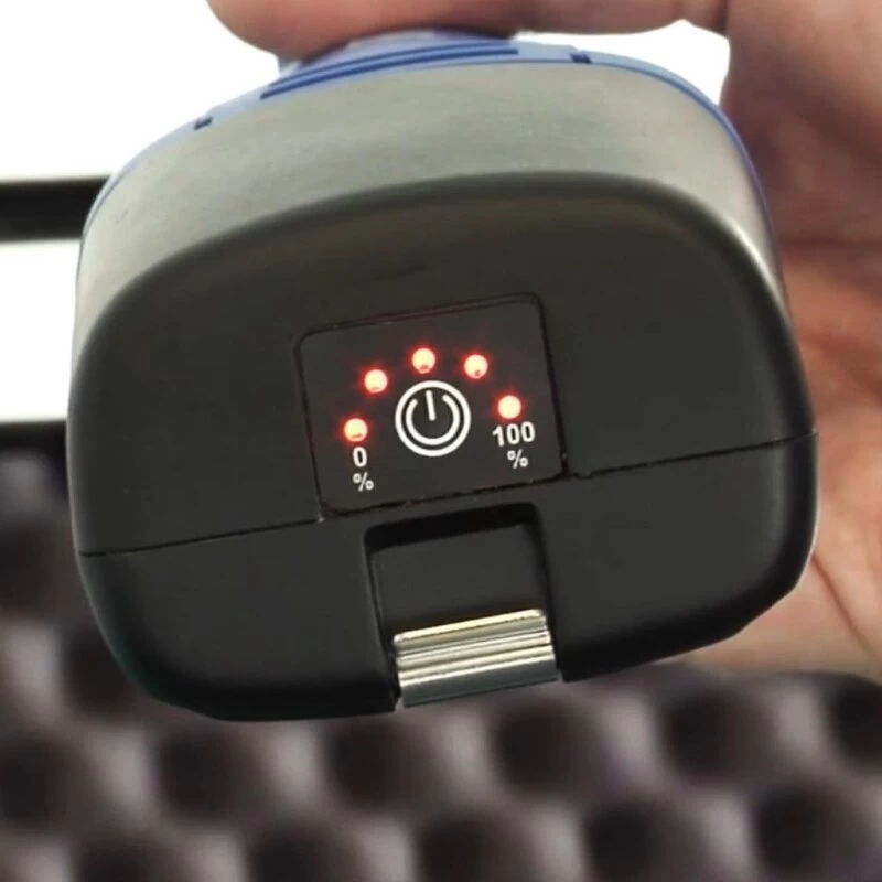 - mit 5 LED Leuchtdioden, die den Ladezustand per Knopfdruck anzeigen