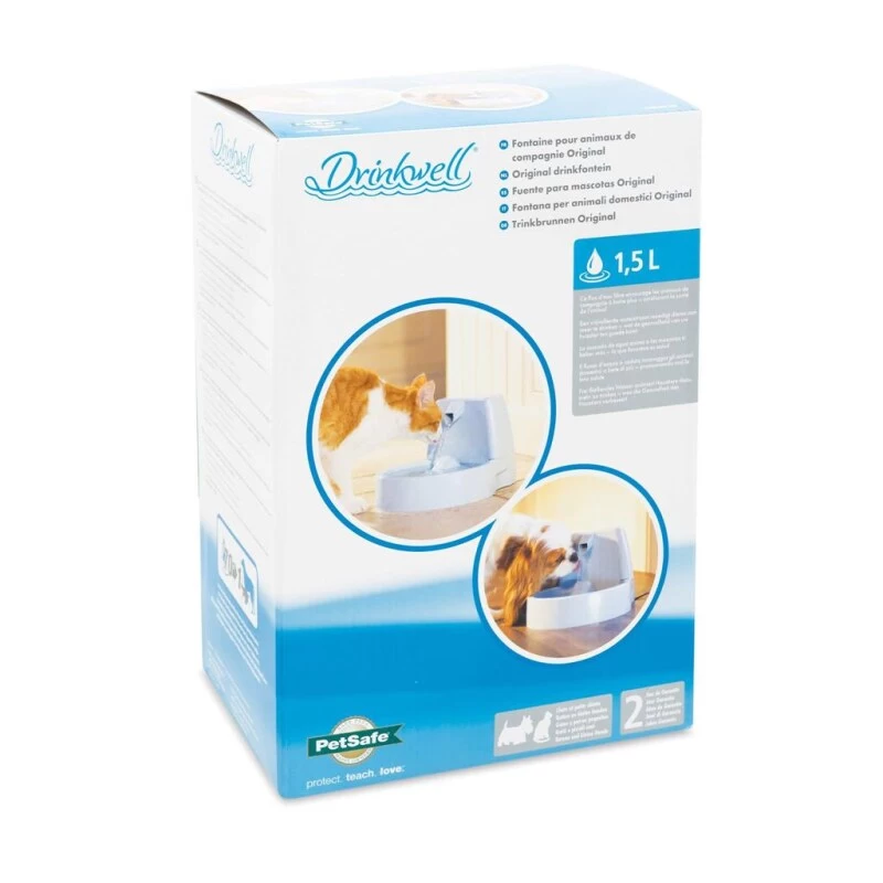 Der Katzenbrunnen »DrinkWell« Trinkbrunnen hat ein Fassungsvermögen von 1,5l. Er ist eine der besten Möglichkeiten zur Verbesserung der Gesundheit von Haustieren besteht darin, sie zu motivieren, mehr Wasser zu trinken. Deshalb wurde der ursprüngliche Haustierbrunnen entwickelt. Durch das frei fließende mit Aktivkohle gefilterte Wasser wird sichergestellt, dass das Haustier außerdem eine gesunde Menge Sauerstoff zu sich nimmt.