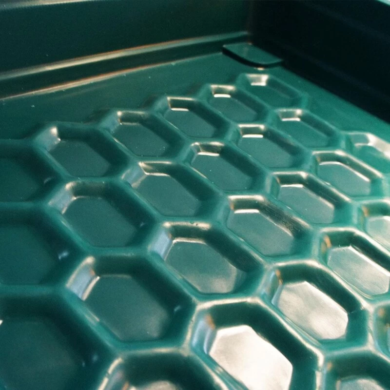 Die Klauenwanne »Suevia KB200« zur Klauenpflege (200x90x15cm). Durch das durchdachte Wabenprofil wird die Klaue beim Durchschreiten der Tiere gespreizt und Flüssigkeit kann gut in den Zwischenklauen-Bereich eindringen: