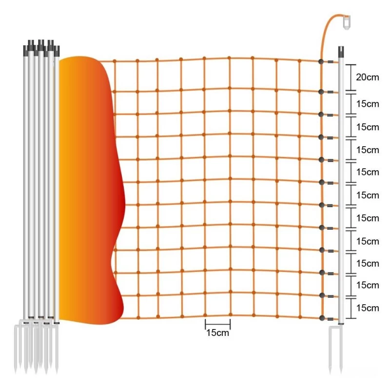Ein Durchhängen bei Elektronetz Elektrozäunen kann die Hütesicherheit des Weidezauns beeinträchtigen. Wir empfehlen dann mit zusätzlichen Weidezaunpfählen (Ersatzpfählen) das Elektronetz entsprechend zu stützen. Die Ersatzpfähle eigenen sich auch hervorragend um ein Weidetor in Ihr Elektronetz zu integrieren. Fädeln Sie hierzu einfach einen zusätzlichen Weidepfahl im gewünschten Abstand zum Ende / Anfang Ihres Elektronetzes ein, hängen Sie die Litzen in die vorhandenen Pfahlklammern, schon haben Sie ein Weidetor Ihrer Wahl.