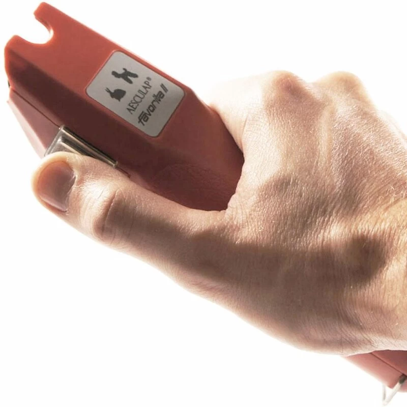 Die Aesculap „Favorita 2 GT104“ Detail Profi Schermaschine / Kleintierschermaschine mit 35 Watt inkl. GT 754 3mm Scherkopf ist eine Universal-Schermaschine aus Deutscher Produktion. Der 3mm Scherkopf GT 754 der Favorita 2 ist ideal für die Körperschur bei Rasse- und Nichtrasse-Hunden mit sauberem Fell. Bei kleineren Tieren wie Terriern kann das Fell auch ein wenig verfilzt sein. Der Aesculap Scherkopf der Favorita 2 ist auch für Ohren, Kopf und Läufe gut geignet. Die Basisschermaschine Favorita 2 GT104 ist optimal für Kleintiere wie Hund und Katze, aber auch perfekt zum professionellen Scheren und Schneiden von Details bei Pferd, Rind, Schaf, Ziege, etc. Das sehr breite Angebot an Schermessern und Köpfen (insgesamt 19) machen die Aesculap „Favorita 2 GT104“ zu einer der umfassendsten Profi Schermaschinen für Tiere auf dem Markt. Die Handhabung der Favorita 2 ist besonders einfach und das schlanke Design und die Anwendung von Spezialkunststoff im Gehäuse lassen die Schermaschine gerade einmal 740g inklusive Scherkopf wiegen. Ein Wechsel des Scherkopfes ist bei laufender Maschine ebenfalls einfach erledigt. Der Ein / Aus Schalter am vorderen Teil der Schermaschine, sorgt dafür, dass die Favorita 2 von Aesculap problemlos mit einer Hand betrieben werden kann.