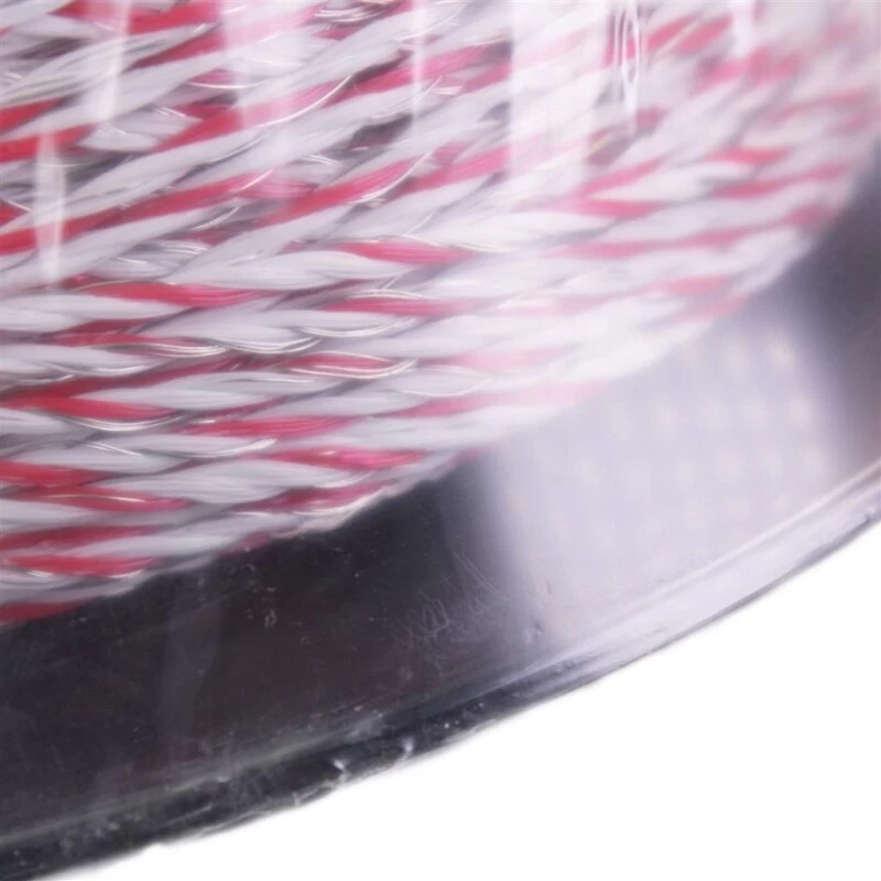 Die Weidezaunlitze »Torero« Kunststofflitze ist 1000m lang (weiß-rot). Die Litzen für den Weidezaun sind aus PE-Monofile 3×6 0,40mm (weiß), 3×1 0,40mm (rot) gefertig. Als Leiter sind in den Weidezaunlitze »Torero« 8 Niro 0,20mm, 1 Cu 0,25mm. Die Weidezaunlitze für Elektrozäune & Weidezäune haben einen elektrischen Widerstand von: 0,23 Ohm/m, Bruchlast: 95kg